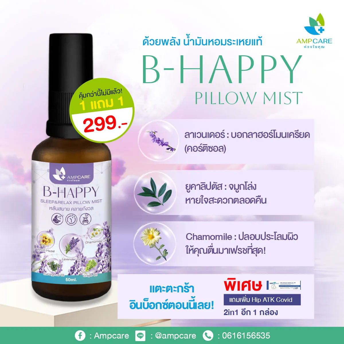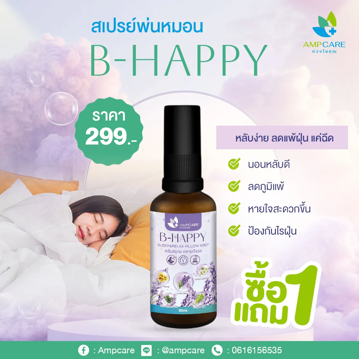 สเปรย์น้ำมันหอมระเหยแท้สำหรับพ่นหมอน ที่นอน เสื้อผ้า 50 มล. “สร้างบรรยากกาศสบายในการนอนหลับลดฝุ่น หายใจโล่ง แค่ฉีด"